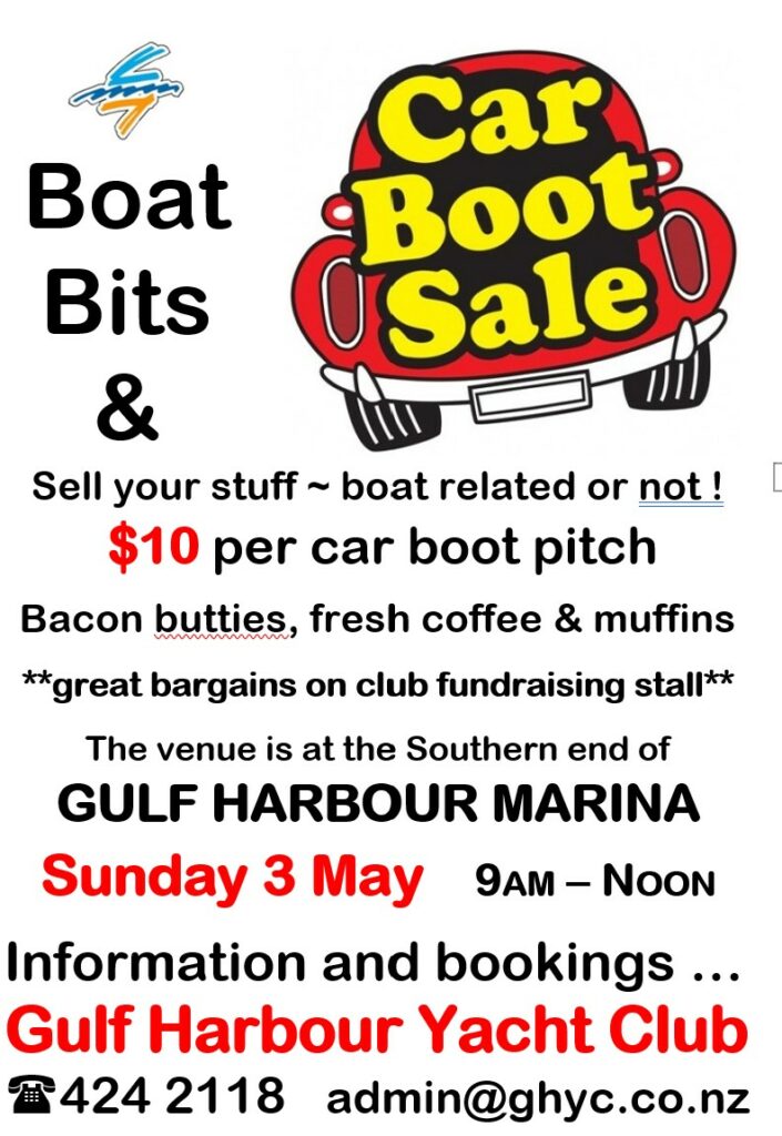 Gulf Harbour is running a car boot sale. Please see poster. All welcome